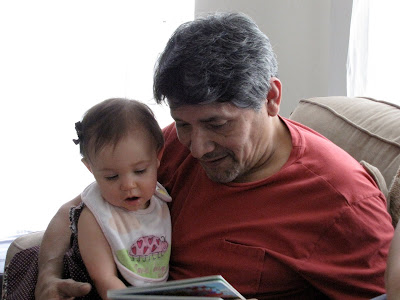 The other exciting piece of news is that on the way home from the salon, I said "I love you" to Emma and she babbled some words that sounded very much like "I love you too." Andy and I laughed and didn't think anything of it until he also said "I love you" and she repeated the same phrase to him. We continued to say it to her and she kept right on saying it back. I don't know if she knows what she's saying, but in our hearts, we think she does.