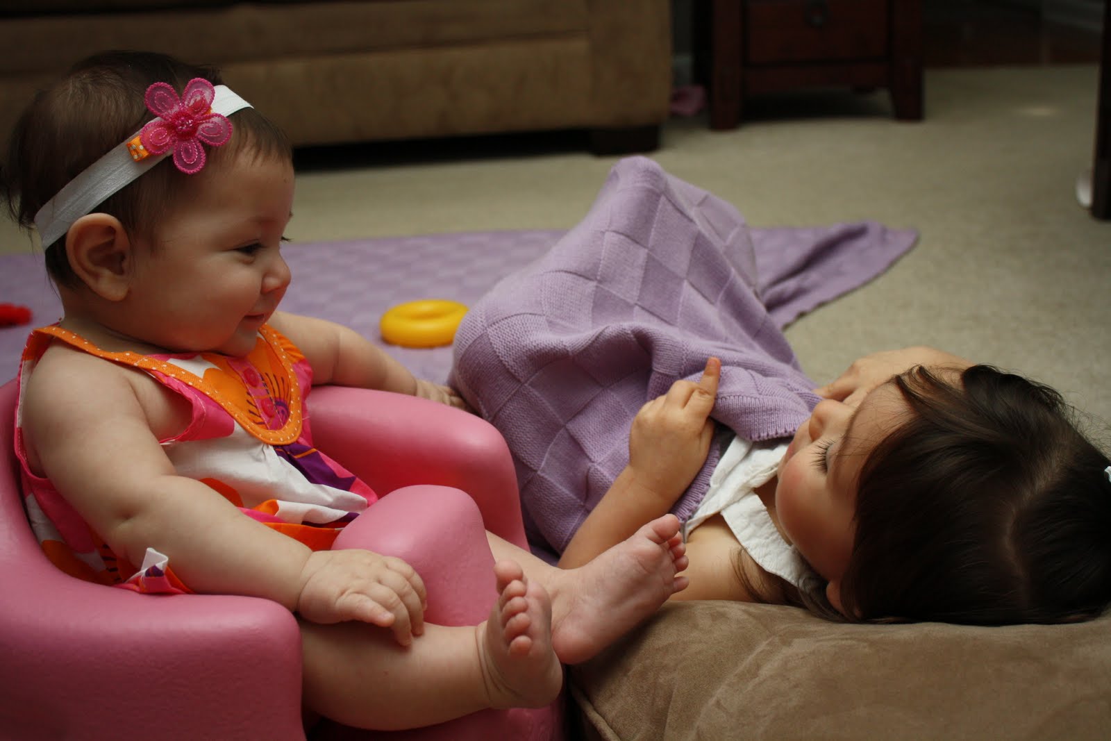 Sophia was doing tummy time and Emma didn't want her to be lonely so she joined in. :)